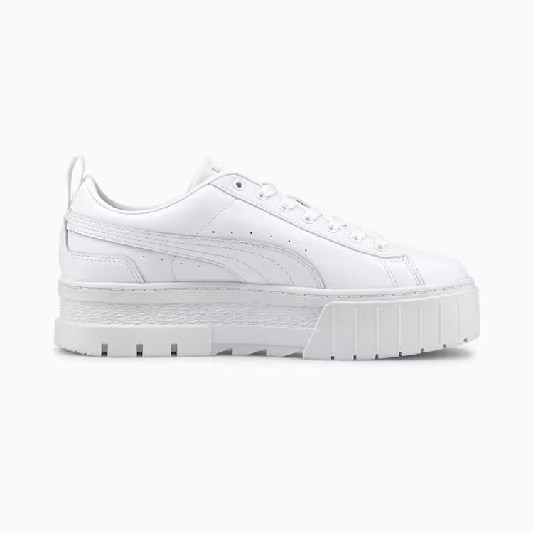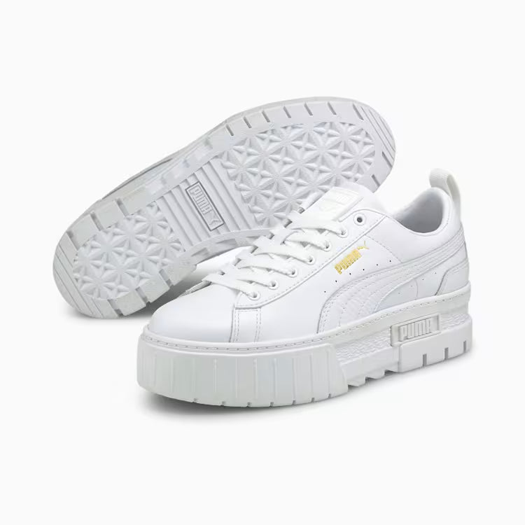 Elevate your street style with the PUMA Mayze Classic Wns platform sneakers. These classic sneakers are designed to make a statement while keeping you comfortable all day long. The platform sole not only adds a trendy touch to your outfit but also provides extra cushioning and support for your feet. Whether you're running errands or hanging out with friends, the Mayze Classic Wns sneakers will keep you looking stylish and feeling great. Step up your shoe game with these must-have PUMA sneakers.