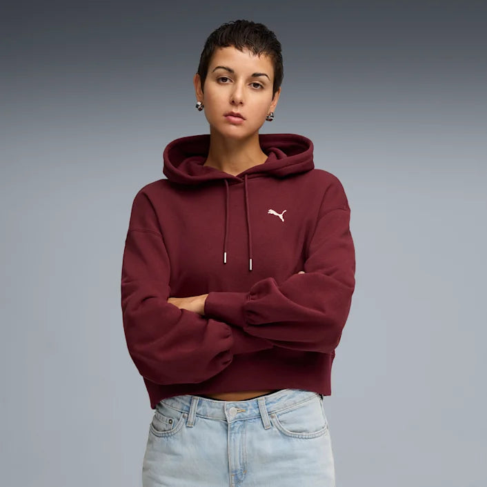 Unleash your inner trendsetter with this PUMA cropped hoodie. Featuring a sleek logo, tonal drawcords, and bell sleeves, it's perfect for making a statement. Ribbed cuffs and waistband add a touch of finesse, ensuring you stand out effortlessly.