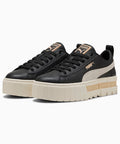Elevate your street style with the Mayze platform sneakers. These trendy platform sneakers offer a bold and stylish look that will turn heads wherever you go. With a sleek upper and chunky platform sole, they provide both fashion and comfort. Make a statement with every stride.